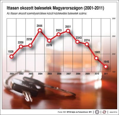 Szigorítás az is, hogy az ittas járművezetés megállapításához a korábbi 0,8 ezrelék helyett már a 0,5 ezrelékes véralkohol szint is elegendő. De statisztikai adatok ennek indokoltságát sem támasztják alá. Az alkoholos befolyásoltság miatt bekövetkezett közúti balesetek száma ugyanis 2006 óta minden évben csökken.