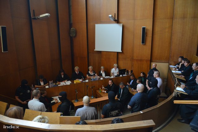 2013. augusztus 6-án megszületett az elsőfokú ítélet a romagyilkosok ügyében. Öt évvel az után, hogy ennek a sorozatnak az első bűntettét elkövették. A Budapest Környéki Törvényszék a négy vádlott közül hármat tényleges életfogytig tartó, míg a negyediket 13 évi fegyházbüntetésre ítélte. Cselekményüket a bíróság bűnszervezetben, aljas indokból, több emberen, előre kitervelten, különös kegyetlenséggel, részben 14. életévét be nem töltött személy sérelmére elkövetett emberölésnek minősítette. E „minősítő körülmények” közül már egy is elegendő ahhoz, hogy az életfogytig tartó szabadságvesztést ki lehessen szabni.