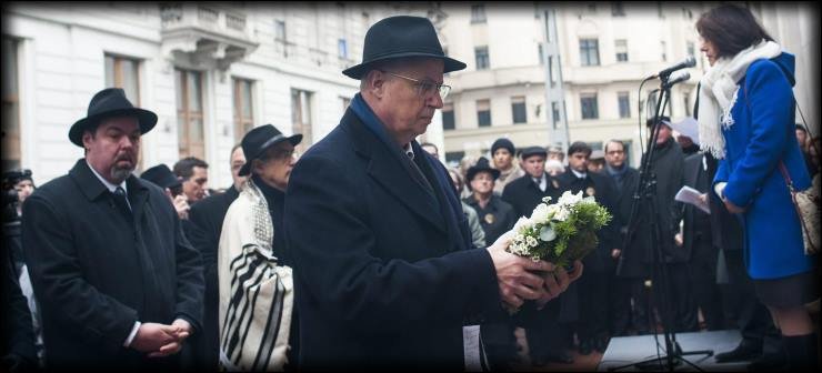 Az azért nem furcsa, hogy a megemlékezésen részt vevő Trócsányi László igazságügyi miniszternek, L. Simon Lászlónak, a Miniszterelnökség parlamenti államtitkárának, a parlamenti pártok képviselőinek és a diplomáciai testületek tagjainak egyetlen hang kifogásuk sem volt a szovjet hadsereg felszabadítóként való említése ellen? Csak és kizárólag Gerő Andrásnak? Aki szerint (a Mazsihisz által felvállalt megemlékezés) „a túlzott mértékű megfeleléssel valójában a mai orosz politika igényeivel, és nem a zsidó emlékezet alappal bíró összetettségével azonosult. Igazi szimbolikus szerepzavar. Nincsenek tisztában azzal, hogy minek és mennyire kell megfelelniük, s minek nem.” (A Mazsihisz ekézéséhez ez esetben már az is elegendő volt, hogy „felvállalta” a mások által szervezett megemlékezést.)